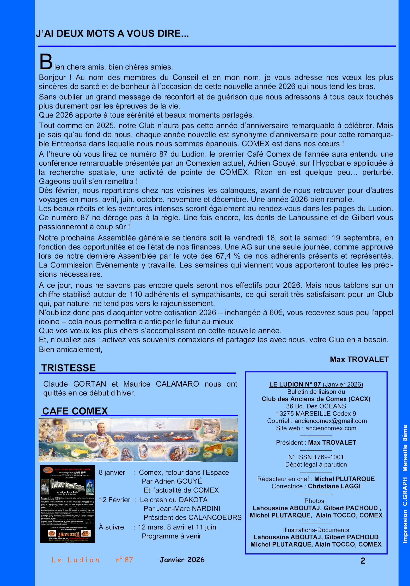 Life can be found the "Mot du Président" and the "Éditorial" from the editor,